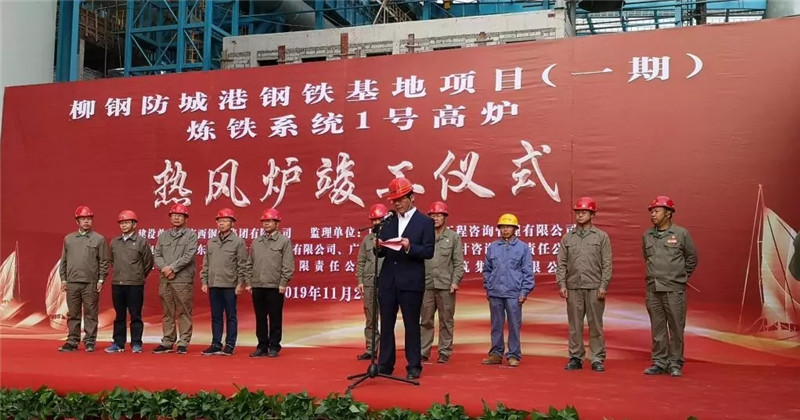 2019年11月29日,柳鋼防城港鋼鐵基地煉鐵系統(tǒng)1#高爐熱風爐舉行竣工儀式。山冶設計董事長魏新民、副總經(jīng)理宋志順出席了竣工儀式,同時出席竣工儀式的還有柳鋼集團總經(jīng)理甘貴平,柳鋼集團副總經(jīng)理、廣西鋼鐵黨委書記、董事長閻駿,廣西華銳鋼鐵工程設計咨詢有限責任公司副總經(jīng)理、總工程師吳建霖,十一冶建設集團有限責任公司總經(jīng)理何權等相關人員。