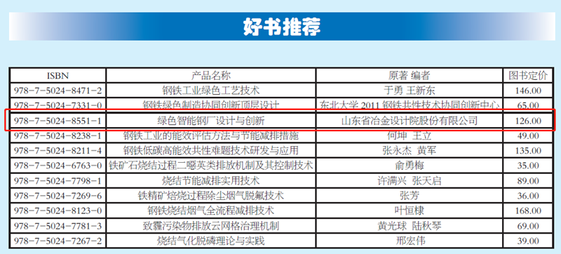 冶金工業(yè)出版社、世界金屬導報社等面向全國讀者推薦了我公司編著的《綠色智能鋼廠設(shè)計與創(chuàng)新》。