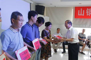 公司董事長魏新民、總經(jīng)理衣忠德給一等獎論文作者頒發(fā)榮譽證書及獎勵。
