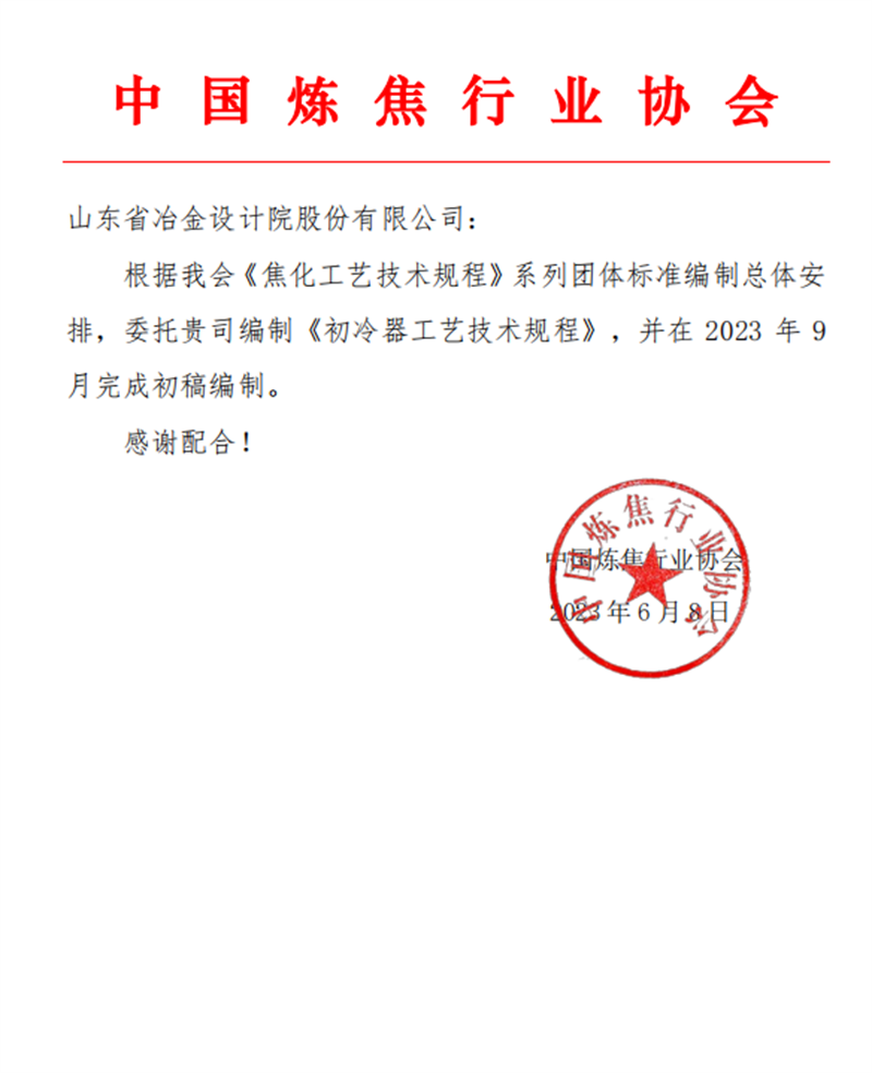 6月8日,我公司收到中國(guó)煉焦行業(yè)協(xié)會(huì)(以下簡(jiǎn)稱(chēng)“中焦協(xié)”)下達(dá)《焦化工藝技術(shù)規(guī)程》系列團(tuán)體標(biāo)準(zhǔn)編制總體安排的通知,委托我公司化工事業(yè)部起草《初冷器工藝技術(shù)規(guī)程》。