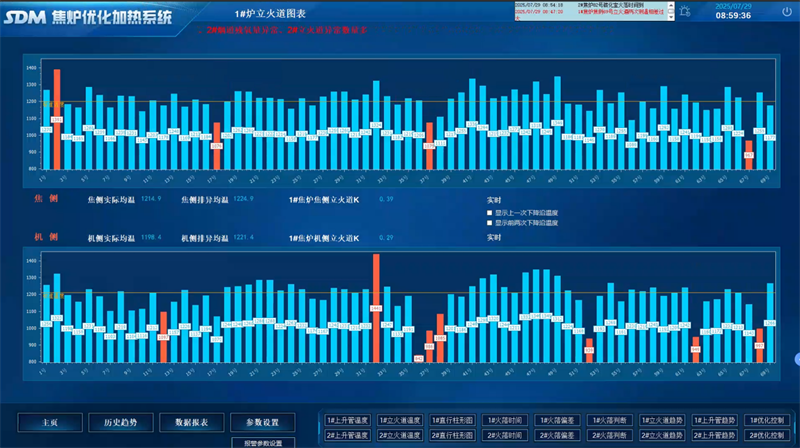 在煉焦環(huán)節(jié),焦?fàn)t自動(dòng)測(cè)溫和優(yōu)化加熱系統(tǒng)成為節(jié)能降耗的“利器”。276個(gè)立火道紅外測(cè)溫點(diǎn)實(shí)時(shí)采集溫度數(shù)據(jù),結(jié)合荒煤氣溫度與煙氣殘氧分析,系統(tǒng)自動(dòng)調(diào)節(jié)煤氣流量與分煙道吸力,預(yù)計(jì)使加熱煤氣消耗降低2.8%,全爐溫度均勻系數(shù)提升至0.92。通過火落時(shí)間預(yù)測(cè)與標(biāo)準(zhǔn)溫度動(dòng)態(tài)優(yōu)化,顯著減小結(jié)焦時(shí)間偏差,大幅減少了能源浪費(fèi)。