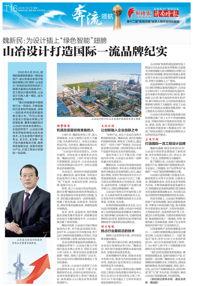 魏新民:為設計插上“綠色智能”翅膀 山冶設計打造國際一流品牌紀實