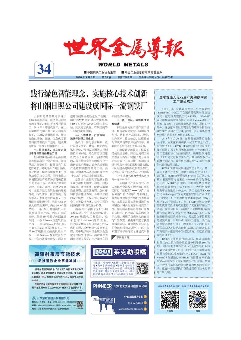 踐行綠色智能理念,實施核心技術(shù)創(chuàng)新 將山鋼日照公司建設(shè)成國際一流鋼鐵廠